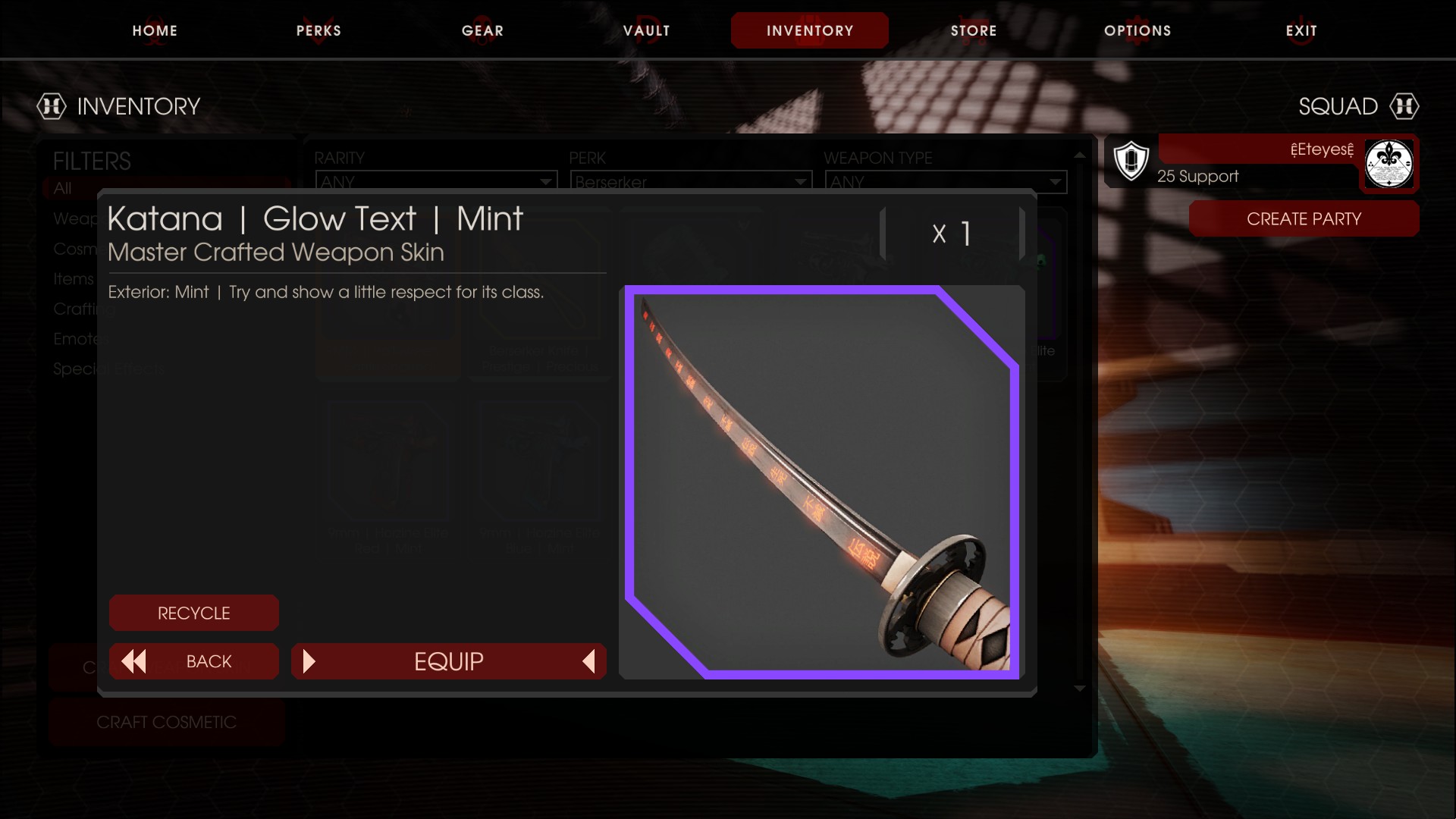 The katana is now an off perk weapon which means you have 0 xp gain while using it.